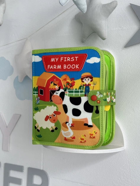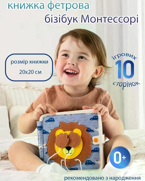 М'яка книжка фетрова бізібук Монтессорі Левеня, пальчикові ігри, сортер, елементи на липучках