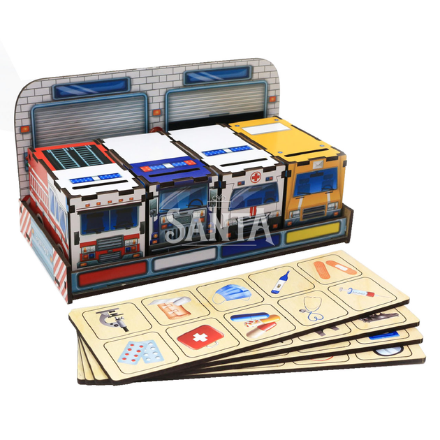 Чарівний комодик «Службовий транспорт», дерев'яна іграшка, Ань-Янь, 12*23*12 см, від 3 років (ПСФ027)