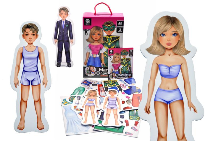 Одягалка магнітна QB006-006 "Ксенія і Марко" 42 магніти, 2 ляльки qbee