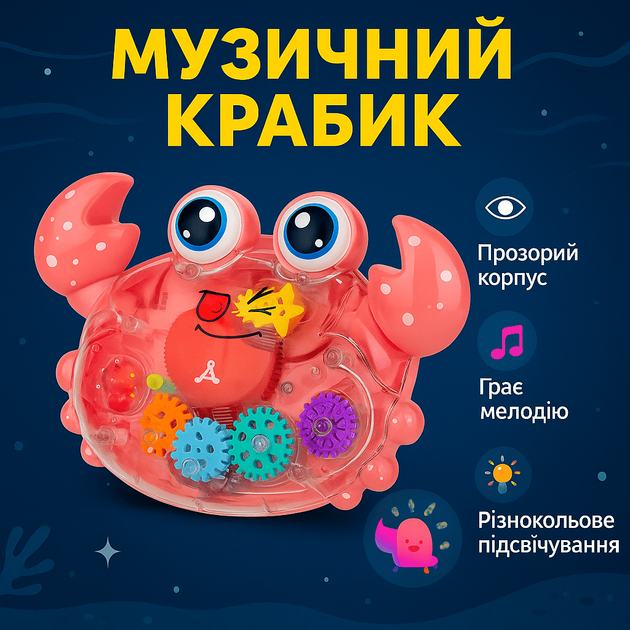 Музичний крабик ToyCloud прозорий корпус, шестерні, світло 696-48