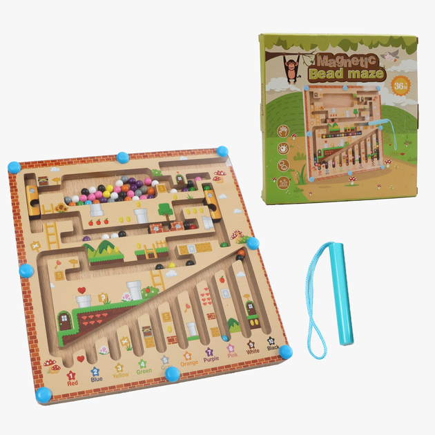 Дерев'яна магнітна гра лабіринт, сортер, кольори, цифри