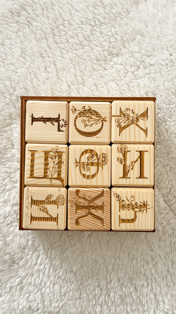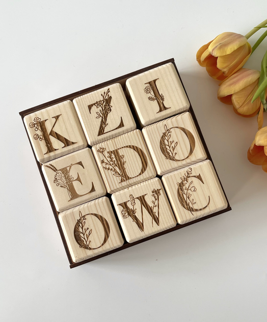 Набір кубиків KASHTANCHIK Квіткова абетка англійською мовою (набір із 9 кубиків у коробочці)