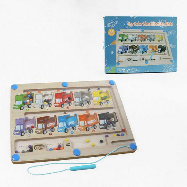 Дерев'яна магнітна дошка (стилус, лабіринт, сортер, кольори англійською, цифри) (TS01091996273545)