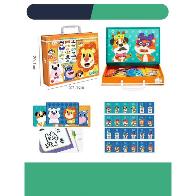 Дерев'яна магнітна дошка З 74456 “Тварини”, картки із завданнями, дошка пиши-прай, у коробці