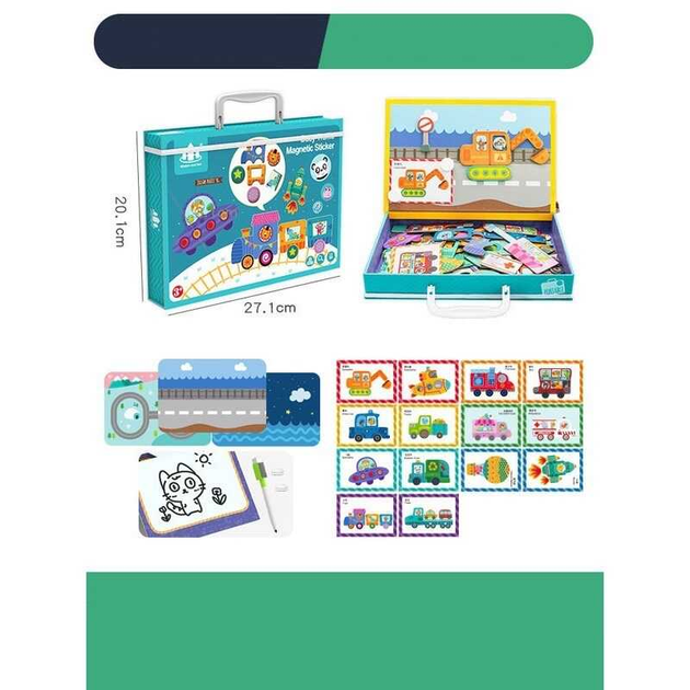 Дерев'яна магнітна дошка З 74457 “Транспорт”, 14 карток із завданнями, дошка пиши-прай, у коробці
