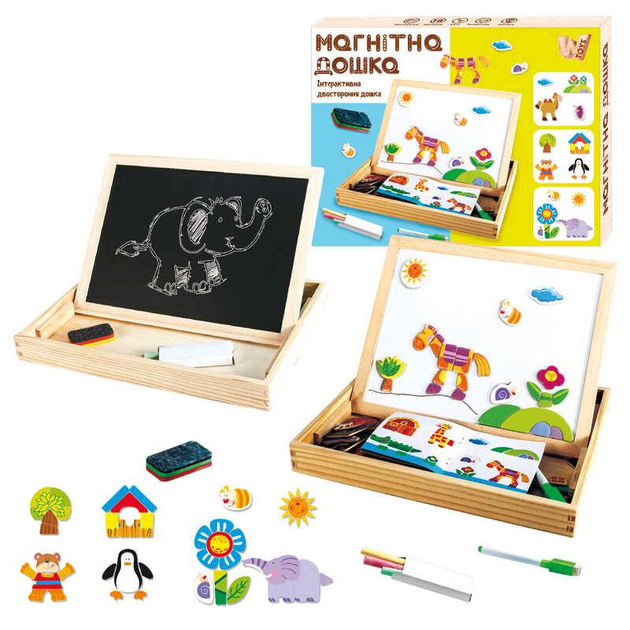 Дерев`яна магнітна дошка Wtoys (97678) магніти, фломастер, губка для стирання, крейда, в коробці