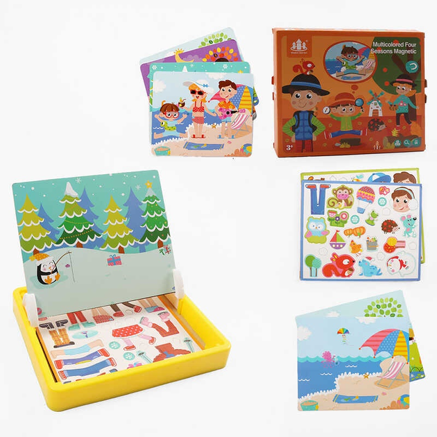 Дерев'яна магнітна дошка З 74458 “Тварини”, 12 карток із завданнями, дошка пиши-прай, у коробці
