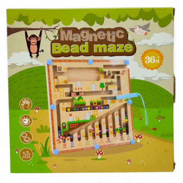 Дерев'яна магнітна дошка зі стилусом Лабіринт Сортер за кольорами Комп'ютерна гра 29,5 х 29,5 см
