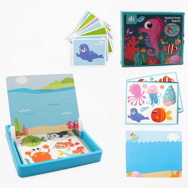 Дерев'яна магнітна дошка З 74452 "Морські жителі", маркер, картки, магніт, назви англійською мовою, в коробці