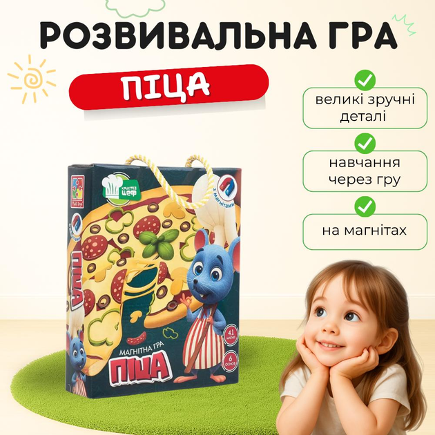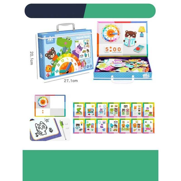Дерев'яна магнітна дошка З 74458 “Тварини”, 12 карток із завданнями, дошка пиши-прай, у коробці