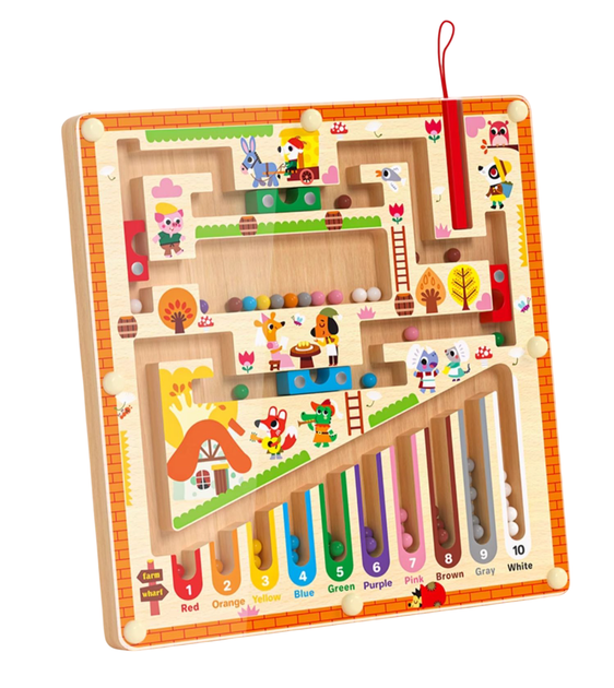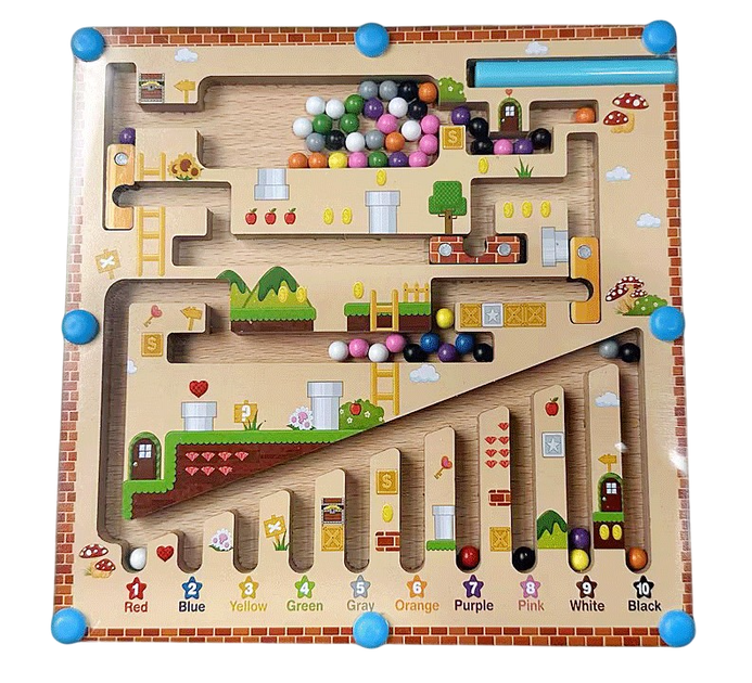 Дерев'яна магнітна дошка зі стилусом Лабіринт Сортер за кольорами та цифрами 18 х 18 см