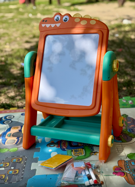 Детский мольберт 2 в 1 «Динозавр» с конструктором и маркерной доской