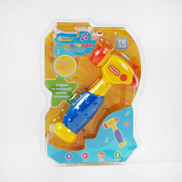 Музичний молоточок 37156 "TK Group", 2 види, ОЗВУЧУВАННЯ УКРАЇНСЬКИМ МОВОМ, пісня, звуки, підсвічування, на листі