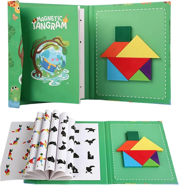 Танграм (Tangram) Дерев’яна головоломка в магнітний папці - зелений (слоник)