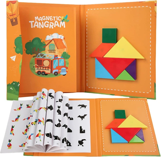 Танграм (Tangram) Дерев’яна головоломка в магнітний папці - помаранчевий (транспорт)