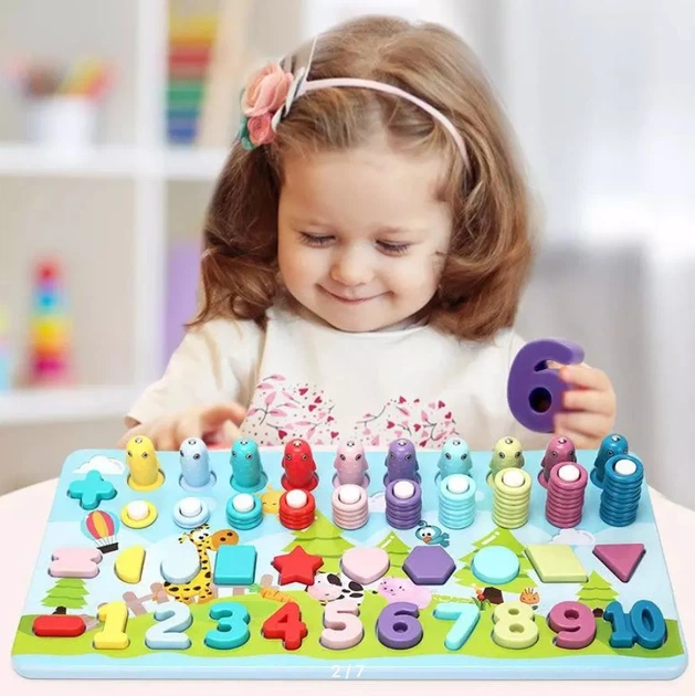 Дерев'яний розвиваючий центр гра сортер для малюків мультифункциональний математика геометрика рибалка Монтессорі.