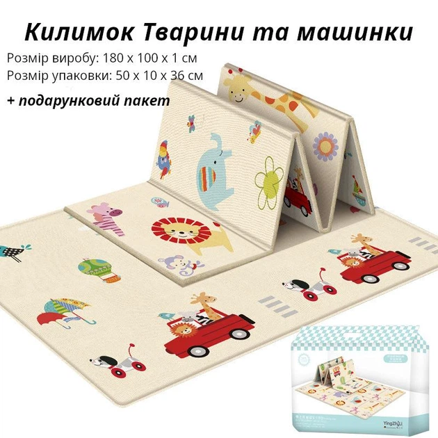 Складаний термо килимок Obetty для ігор Тварини та машинки 180 х 100 х 1 см (109-281)