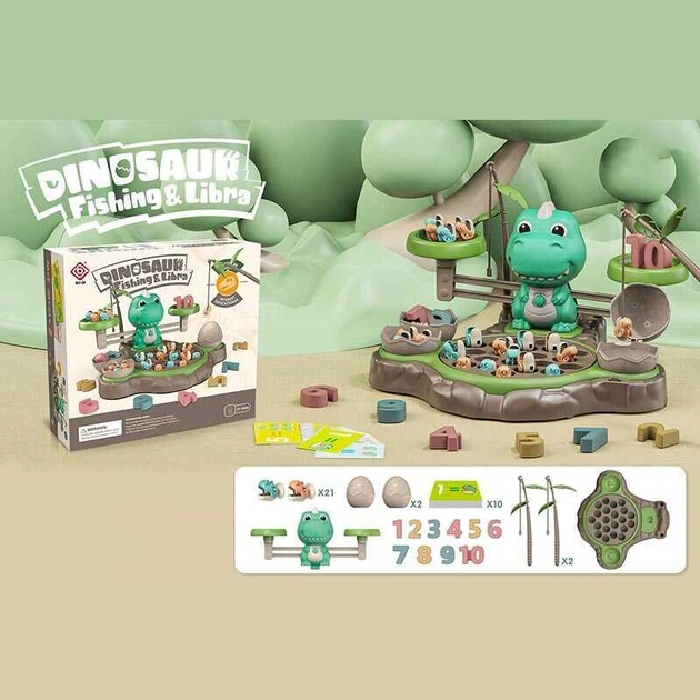 Рибалка та ваги цифри, динозаври на магнітах, 2 вудки, картки із завданнями, мелодія BQ 819 A