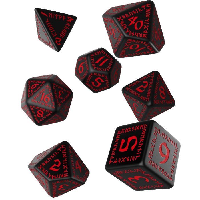 Набір кубиків для настільних ігор Q-Workshop Runic Black red Dice Set (7 шт) (SRUN06) SRUN06
