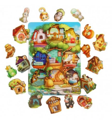 Дерев'яний вкладиш Ubee "Де чий будиночок на дереві?" 18 фігурок тварин та будиночків (ПСД172)