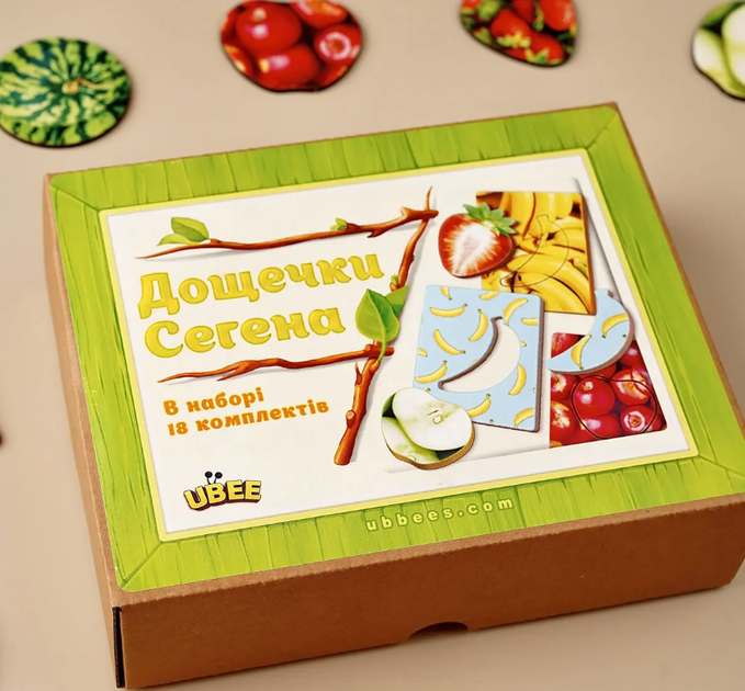 Дерев'яні Дошки Сегена "Фрукти" Ubumblebees, навчальна гра для дітей від 2 років, розвиток моторики та логіки