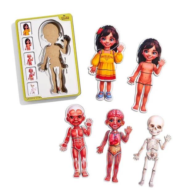 Пазл-сортер дерев'яний 5-ти шаровий Анатомія людини, Дівчинка