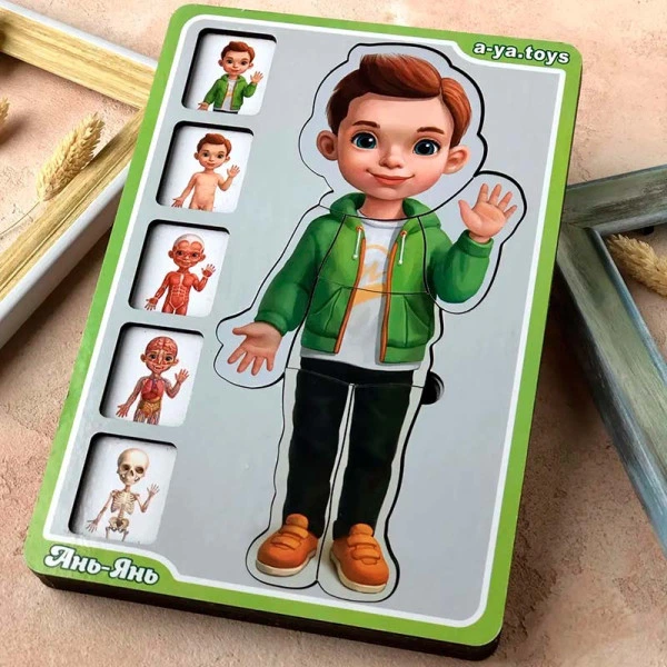 Сортер-пазл дерев'яний Анатомія людини Хлопчик Ubee ПСФ026