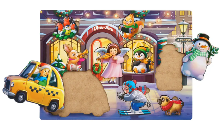 Великий дерев'яний сортер-вкладиш "Новорічний -3" Ubee ПСФ032, гра для дітей, що розвиває 3+, 12 деталей