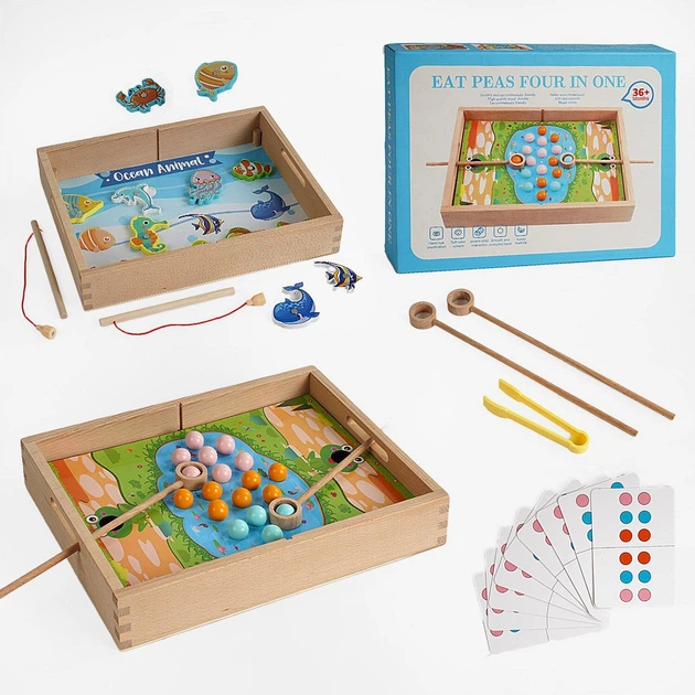 Дерев’яна логічна гра Магнітна риболовля, 12 двосторонніх карток