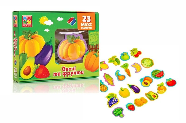 Набір магнітів "Овочі та фрукти" VT 3106-28 укр "Vladi Toys", 23 елемента, в коробці