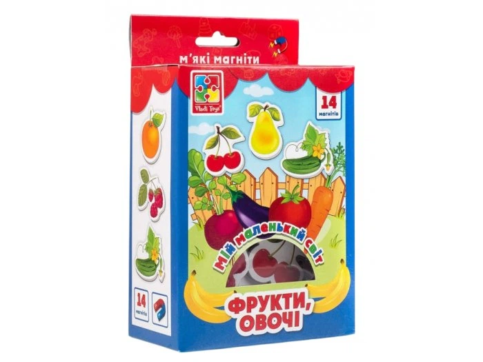 Набір магнітів Мій маленький світ, фрукти, овочі, російською/українською