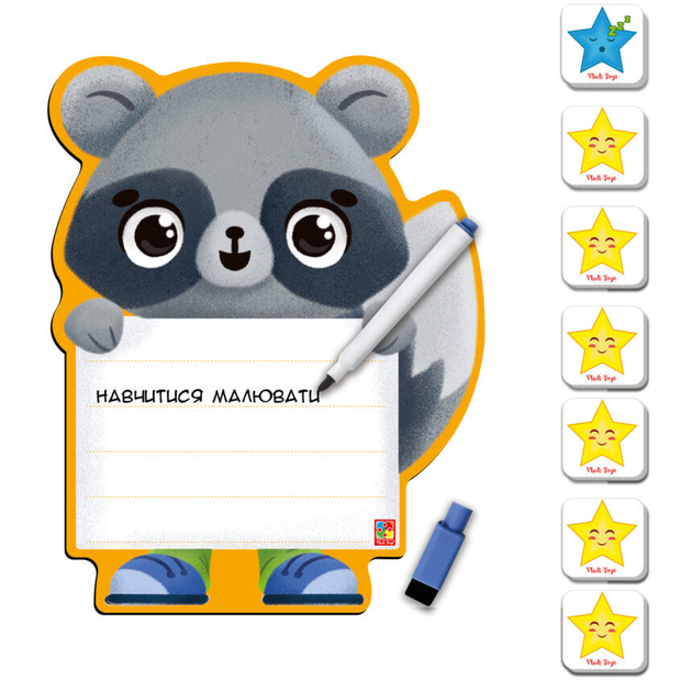 Магнітна дошка Vladi Toys VT3601-20 «Єнот» з маркером та магнітами для нотаток 3-8 років