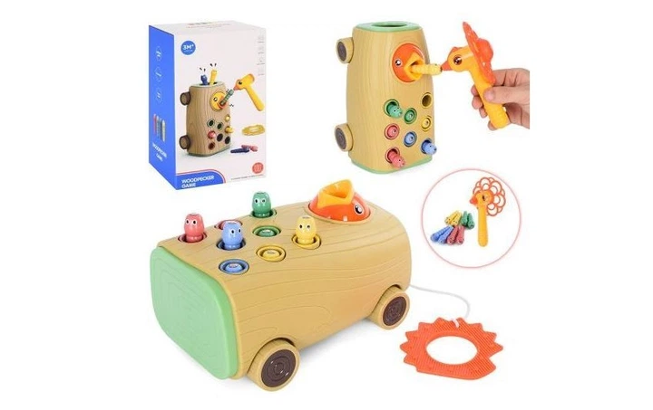 Дитяча іграшка, каталка, "Нагодуй пташку" Woodpecker, магнітна, на шнурочку