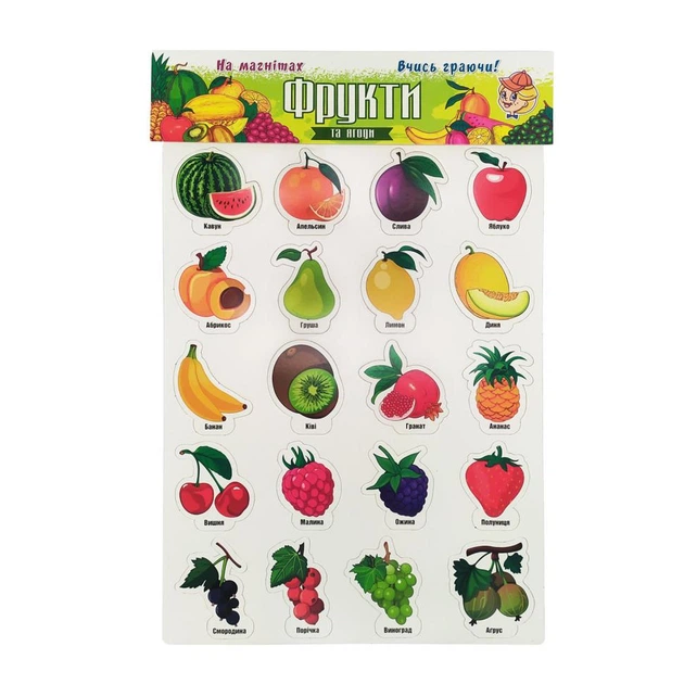 Набір магнітів на листі "Фрукти та ягоди" Artos 1250ats Укр.