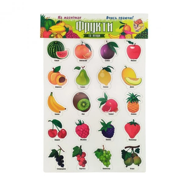 Набір магнітів на листі "Фрукти та ягоди" Artos 1250ATS Укр.