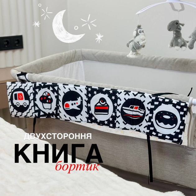 Двухстороння книжка бортик QBX085A для немовлят Чорно - біла