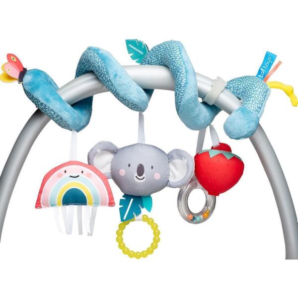 Спіраль "Веселка" колекції "Мрійливі коали" - справжній ігровий центр, який закручується навколо дуги автокрісла або прогулянкового візочка. М'яка спіраль М'яка спіраль, як змійка, обвиває дугу автокрісла або візочка. Ремінці Ремінці на липучках утримують іграшку в постійному положенні. Підходить Спіраль підходить для візочка-люльки, прогулянкового візочка, автокрісла та переноски для немовлят. Іграшка ідеальна для мультисенсорного розвитку Наповнена кольорами, орнаментами, текстурами та звуками, чудово підходить для ігор вдома або в дорозі.