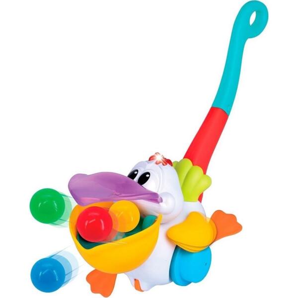 . Що вміє робити Пелікан-Витівник: Під час руху вперед із дзьоба Пелікана вискакують кульки, які потрібно зібрати. Лапки Пелікана обертаються разом з коліщатками. Крила рухаються вгору-вниз. Гребінець на голові світиться. Гра супроводжується веселими пісеньками та кумедною лічилкою.