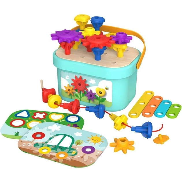 Дерев'яна іграшка шестерні, шнурівка, картки, блоки, ящик, 49 деталей TJ631