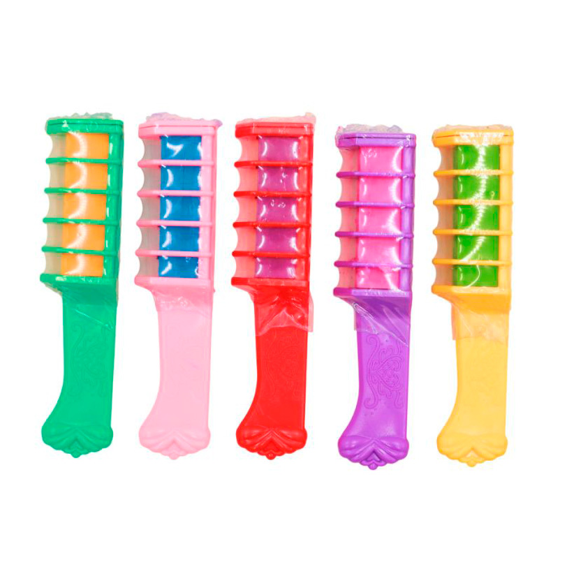 Набір крейди для волосся Яскрава зачіска - набір дитячої крейди у вигляді гребінців. Особливості: набір складається з 5 кольорів – блакитний, жовтий, зелений, фіолетовий, рожевий; різнобарвна крейда подарує яскраві кольорові пасма та оригінальну зачіску; крейда легко змивається з волосся за допомогою води та звичайного шампуню. Рекомендовано для дітей від 3-х років.