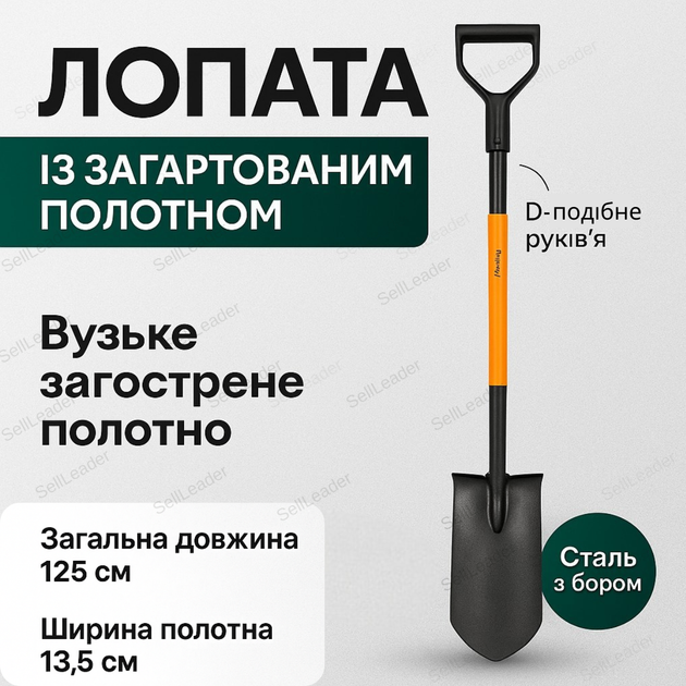 Траншейна лопата Bradas 125см загартована сталь для траншей труб канав штикова 13.5см дренажна лопатка вузька