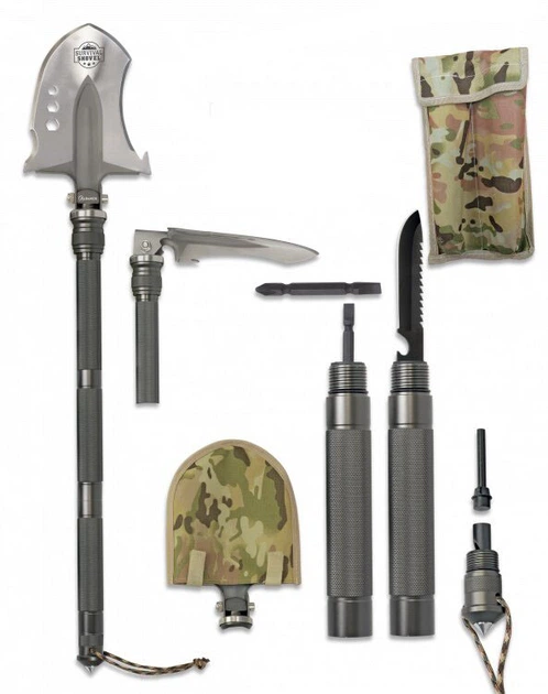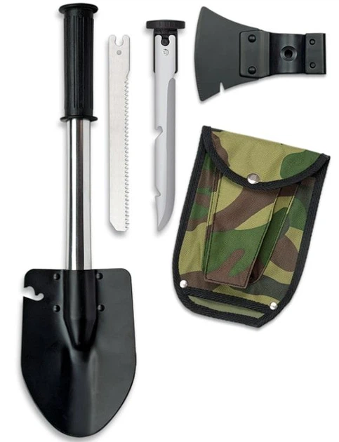 Лопата зі знімною ручкою 17х12,5 см з нейлоновим чохлом, сокирою, пилкою та ножем Martinez Albainox загартована сталь
