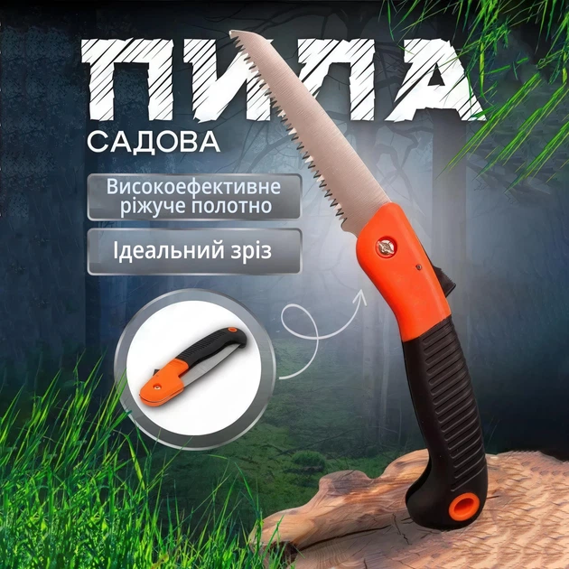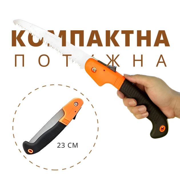 Садова складна пила 40 см, розкладна пилка, складана ножівка (чорн/помар)