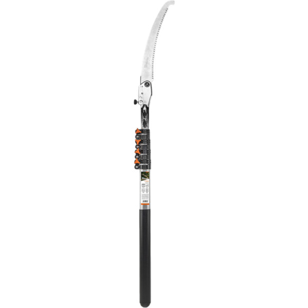 ті, додаткові характеристики/ - Телескопический черенок изготовлен из алюминия. - Высококачественное полотно из стали SK5 - Двухсторонние пильные зубцы - Изогнутое полотно позволяет быстро и легко обрезать толстые или тонкие ветки. - Крючок на конце полотна обеспечивает точную резку и предотвращает выскальзывание инструмента во время работы.