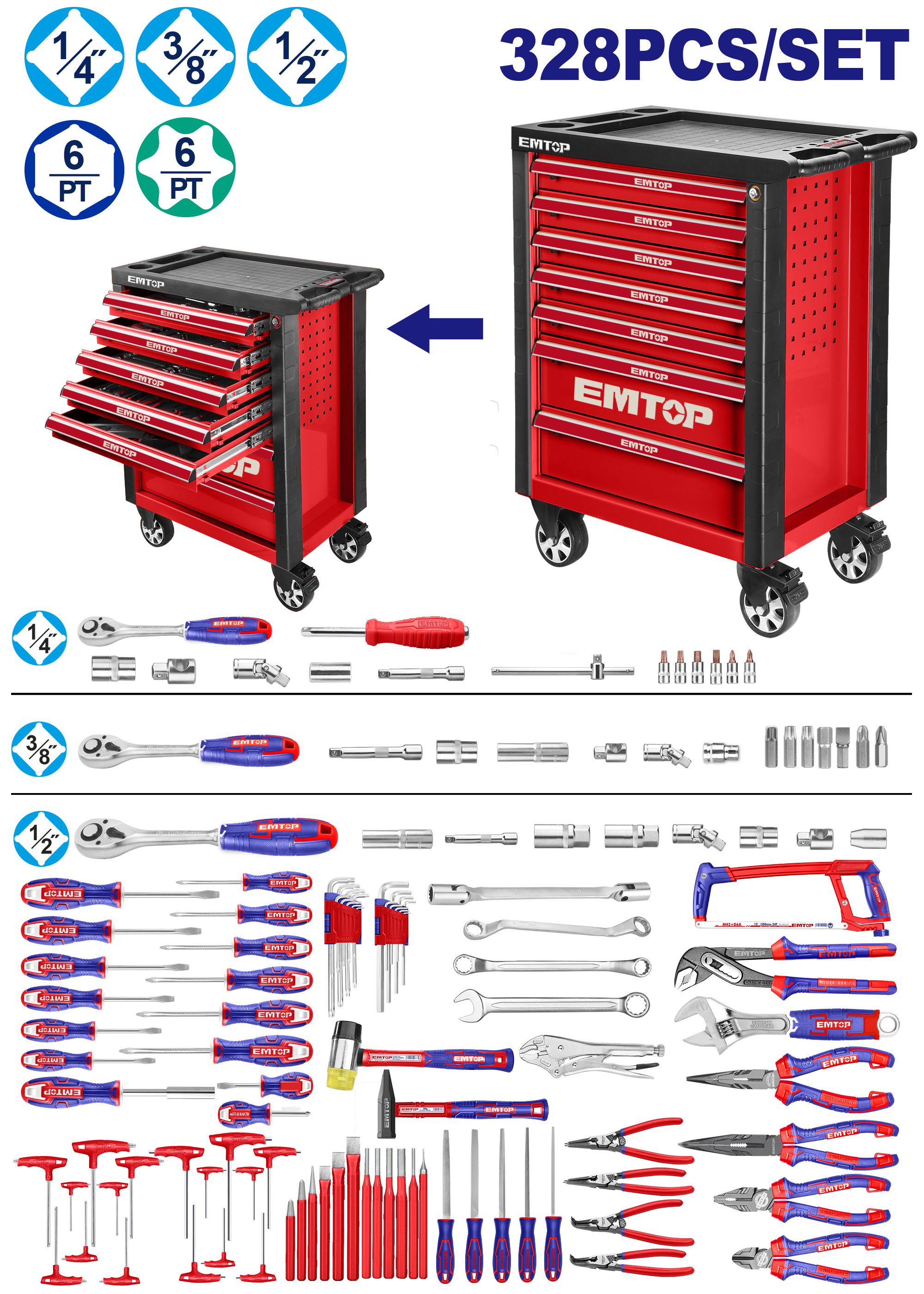 Візок для інструментів EMTOP EHTS03281, 328 шт.