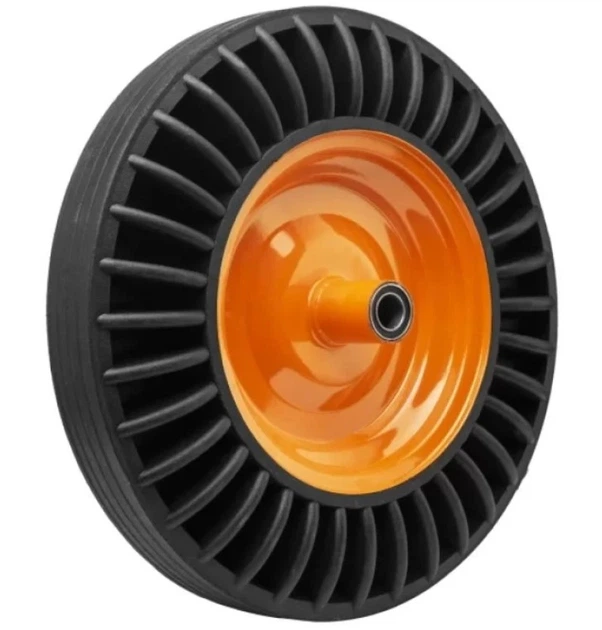 Колесо суцільногумове BLUETOOLS (4х8, 380 мм, 80 мм) чорне з помаранчевим диском без вісі (24387)
