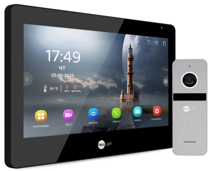 Комплект Neolight MEZZO Hybrid HD KIT Black: гібридний відеодомофон 10.1" з Wi-Fi та 2 Мп відеопанель