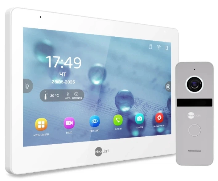 Комплект Neolight MEZZO Hybrid HD KIT SilverP: гібридний відеодомофон 10.1" з Wi-Fi та 2 Мп відеопанель