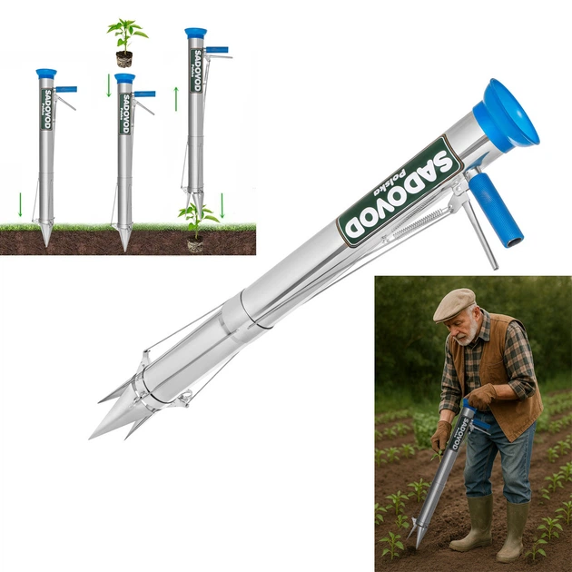 Ручна саджалка SADOVOD з двома ручками для розсади, насіння, овочів - висота 90см, діам. 8см