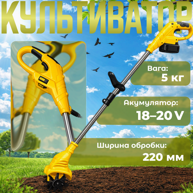 Акумуляторний ручний культиватор 18–20 В для розпушування та прополювання городу